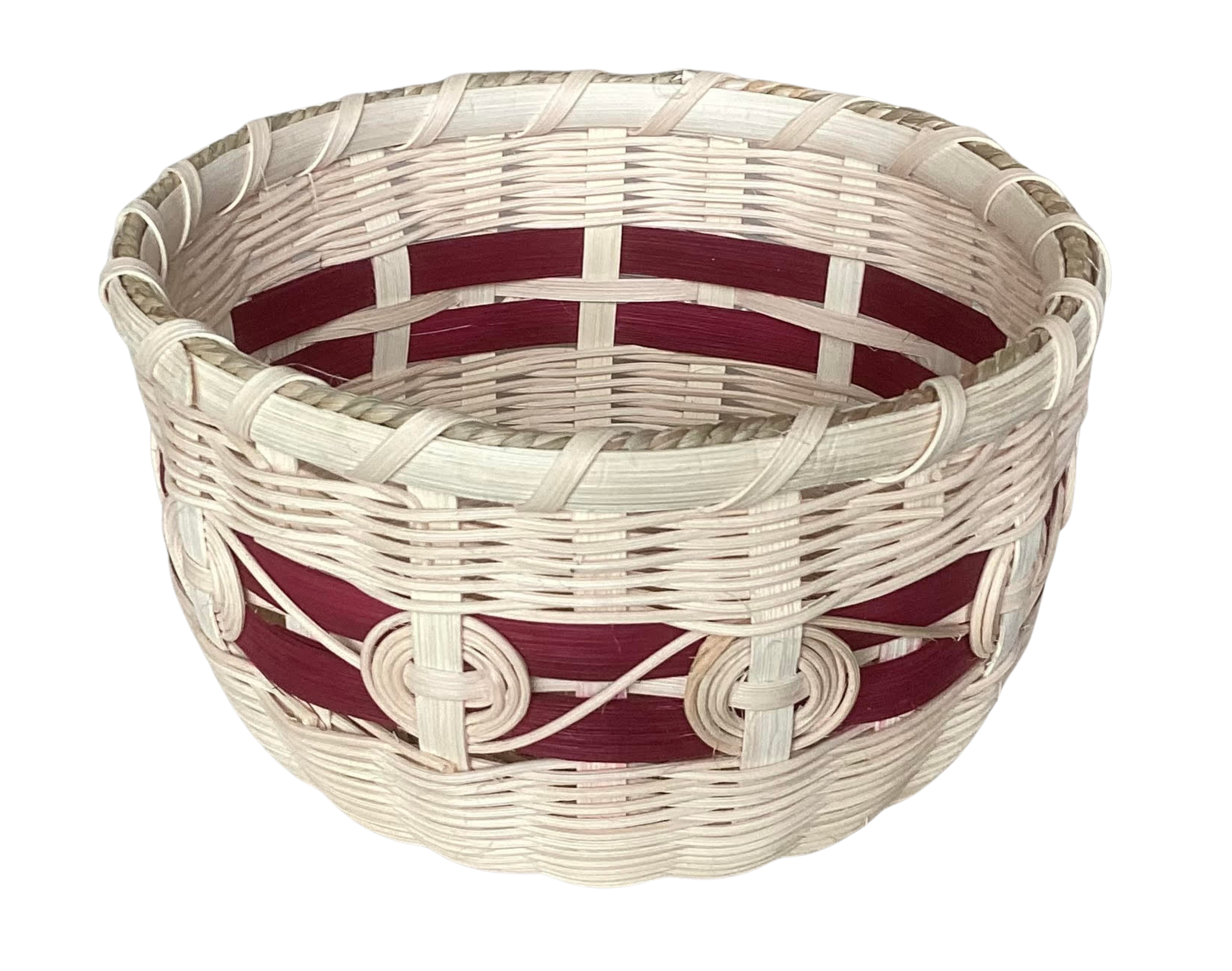 "I have been making baskets and teaching basket classes for over 40 years. My first basket was an 8” melon basket, taught to me by a friend who had taken a class at the Shilo Inn in Seaside, Oregon. I was hooked! There’s so much satisfaction from creating a basket, whether for function or as an art piece.